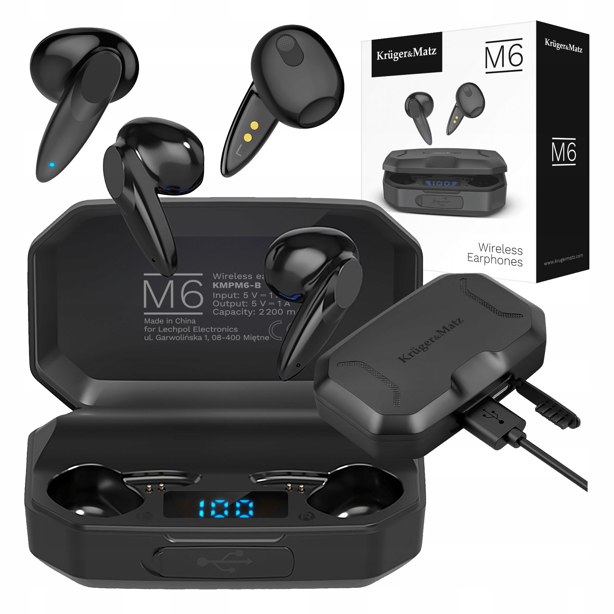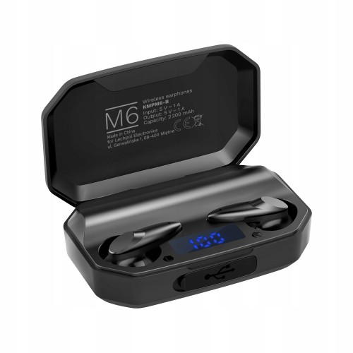 Etui, które otrzymujesz ze słuchawkami bezprzewodowymi M6, nie tylko umożliwia ich ładowanie i bezpieczne przechowywanie. Dzięki wbudowanej baterii 2200 mAh staje się ono power bankiem, który pozwoli Ci doładować inne urządzenia.
