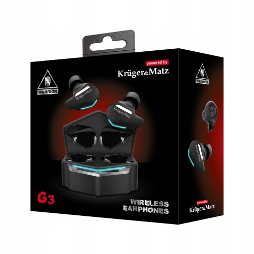 Gamingowa seria Kruger&Matz Warrior została poszerzona o słuchawki dokanałowe G3. Model ten jest w pełni bezprzewodowy, nie oznacza to jednak, że brzmienie jest gorszej jakości – słuchawki G3 zapewniają doskonały dźwięk, którym możesz cieszyć się przez długi czas.