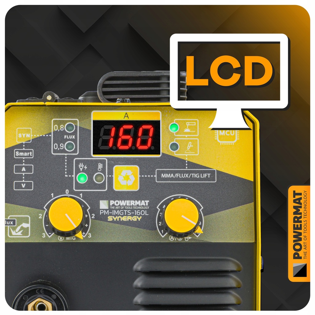 Czytelny panel z ekranem LCD umożliwia szybki dostęp do funkcji i precyzyjne ustawianie prądu pokrętłami, podnosząc ergonomię i wydajność pracy.
