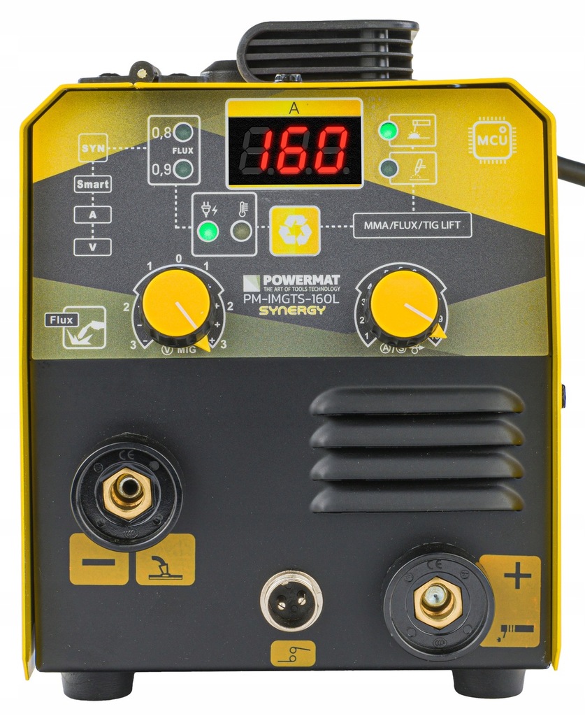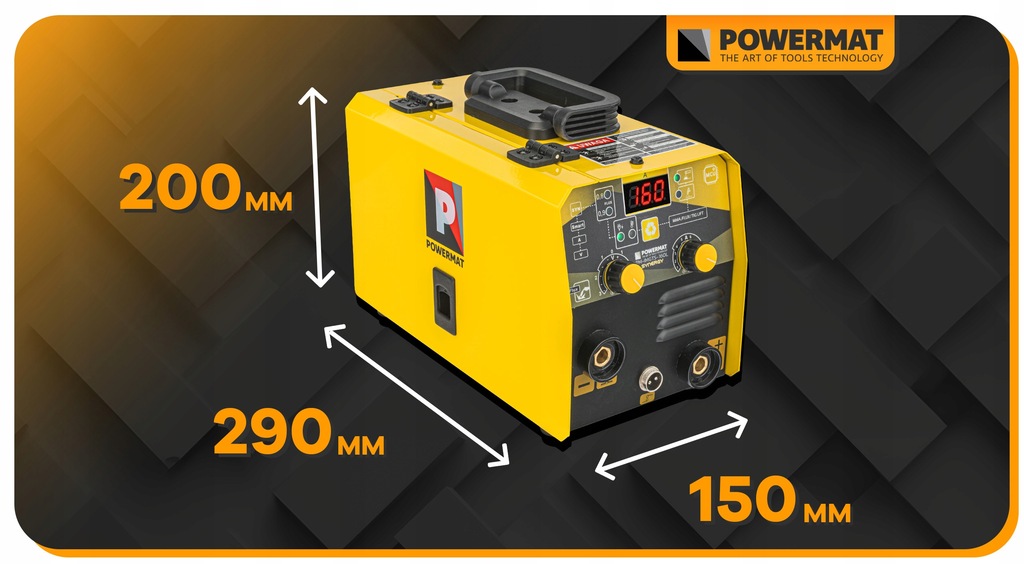 Model Powermat jest automatem spawalniczym, którego konstrukcja bazuje na wydajnych tranzystorach IGBT. Wyposażony jest w 2 czytelne wyświetlacze LCD wskazujący aktualny prąd spawania ustawiany pokrętłami, przy czym jeden z nich jest również przyciskiem wyboru funkcji. Migomat wyposażony jest w wentylator chłodzący, układy elektroniczne oraz pozostałe komponenty, a także czujnik termiczny zabezpieczający urządzenie przed przegrzaniem.