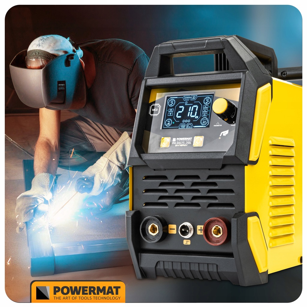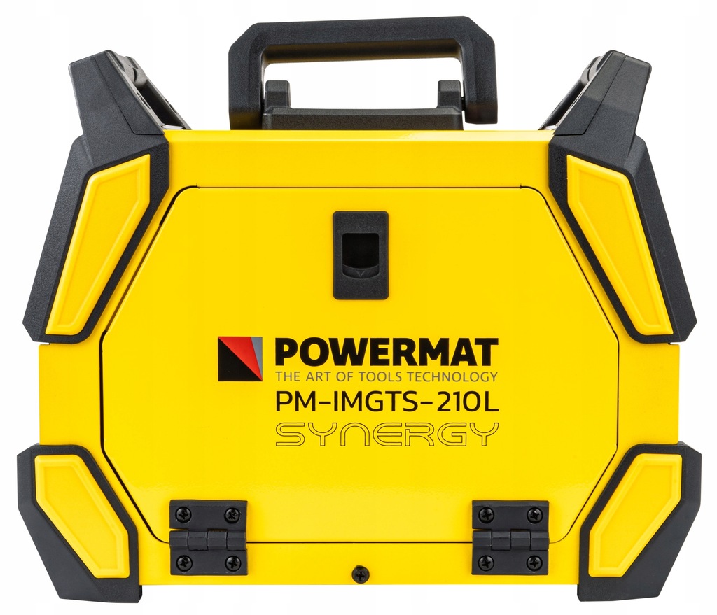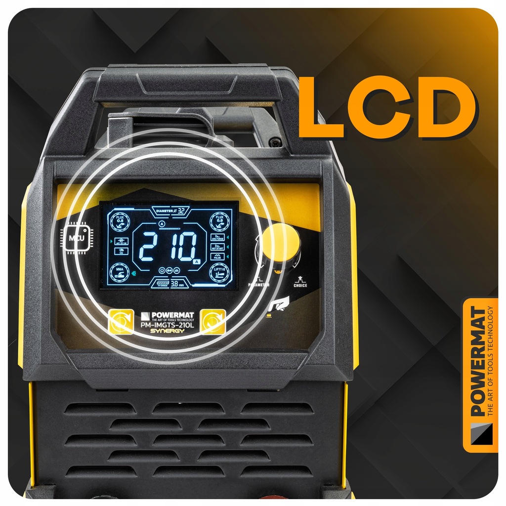 Model PM-IMGTS-210L jest półautomatem spawalniczym, którego konstrukcja bazuje na wydajnych tranzystorach IGBT. Wyposażony jest w czytelny wyświetlacz LCD wskazujący aktualny prąd spawania ustawiany pokrętłami. Wyposażony jest w wentylator chłodzący, układy elektroniczne oraz pozostałe komponenty, a także czujnik termiczny zabezpieczający urządzenie przed przegrzaniem.