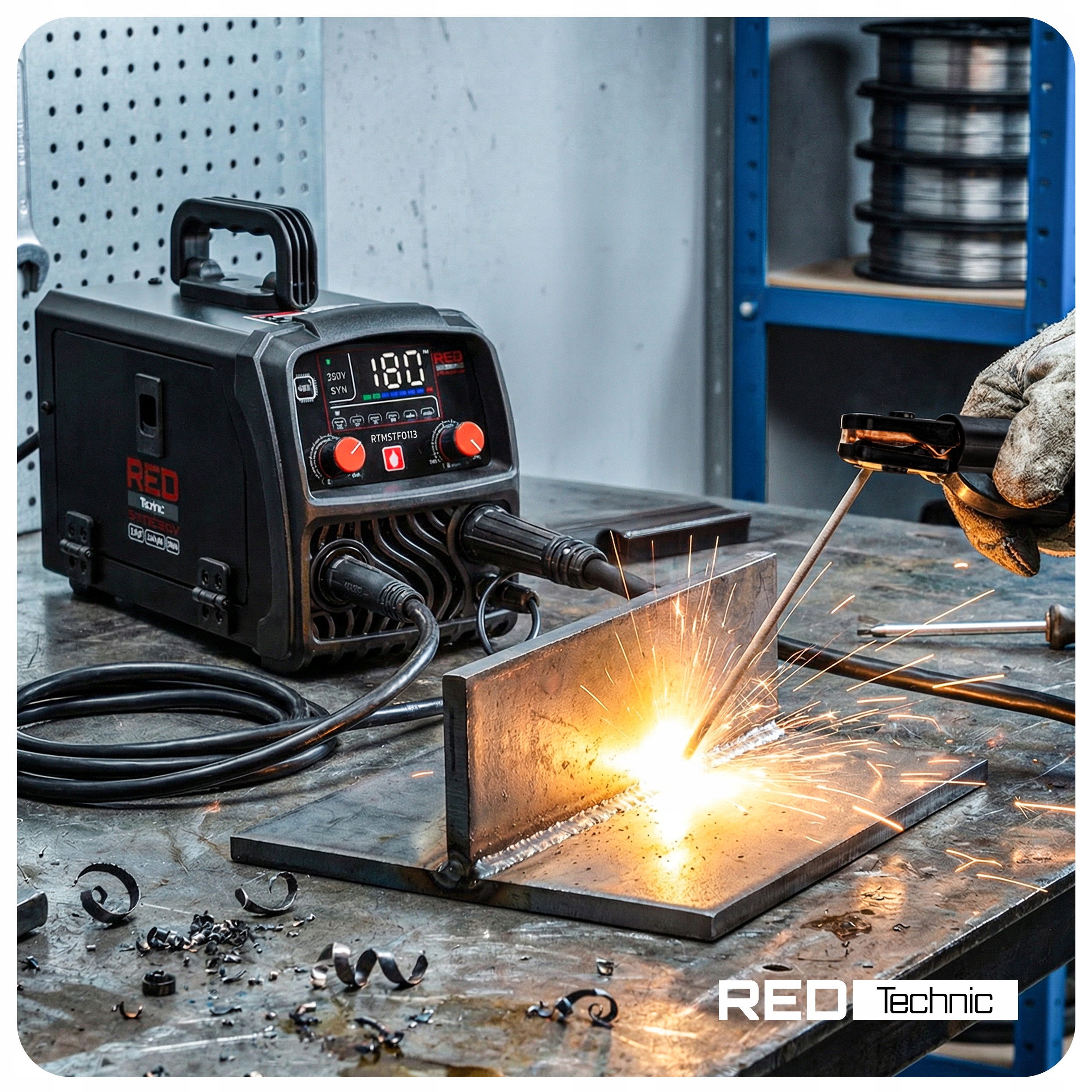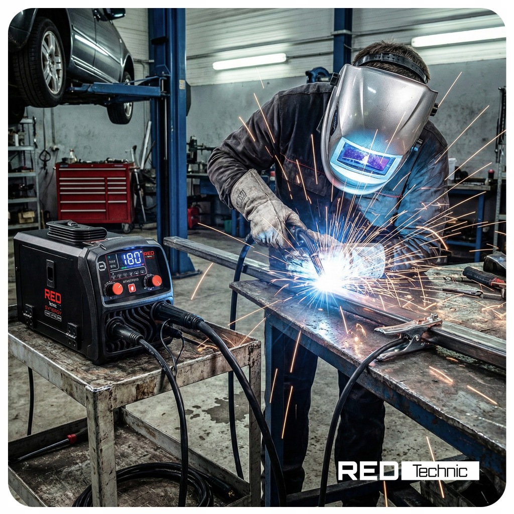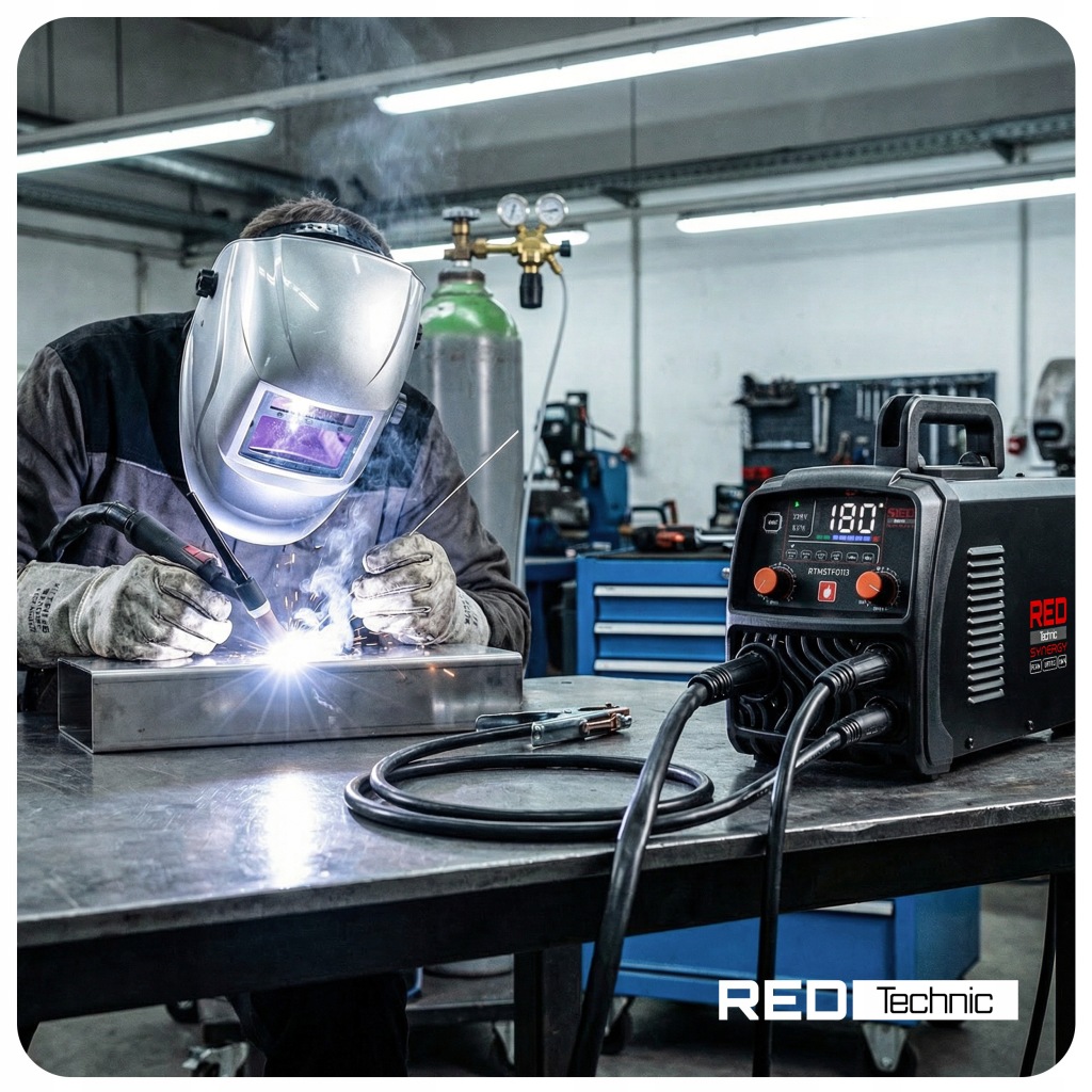 Zakres prądu 30–180 A umożliwia dopasowanie mocy do różnych grubości materiału. W praktyce oznacza to wygodną pracę przy stali konstrukcyjnej, elementach warsztatowych oraz zadaniach montażowych.