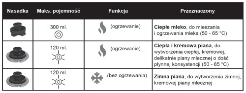 Dzbankowy spieniacz automatyczny do przygotowania pianki mlecznej do kawy, cappuccino, latte i innych napojów na bazie ubijanego mleka. Możliwość przygotowana zimnej pianki mlecznej.