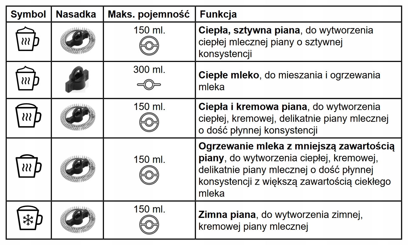 Dzbankowy spieniacz automatyczny do przygotowania pianki mlecznej do kawy, cappuccino, latte i innych napojów na bazie ubijanego mleka. Możliwość przygotowana zimnej pianki mlecznej.