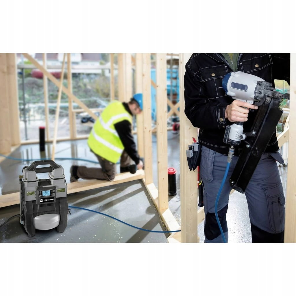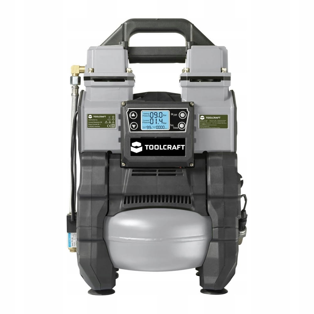 Obsługa i sterowanie sprężarką odbywa się na czytelnym wyświetlaczu LCD. Sprężarka powietrza Toolcraft może być zasilana prądem przemiennym lub stałym. Oznacza to, że oprócz gniazdka akumulator samochodowy jest również dostępny jako zasilacz. Wymagane kable przyłączeniowe są już zawarte w zakresie dostawy. Podobnie jak uchwyt, za pomocą którego kompresor o wadze 10,5 kg można wygodnie ustawić w dowolnym miejscu.