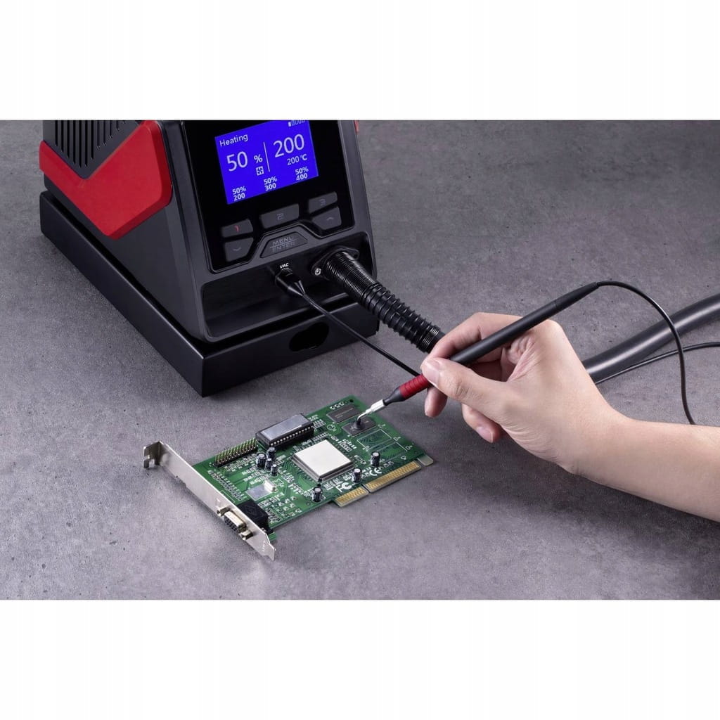 Dla łatwego lutowania i wylutowywania elementów SMD w procesie ogrzewania za pomocą gorącego powietrza. Urządzenie wyposażone jest w regulację temperatury lutowania i wymienne dysze powietrzne.