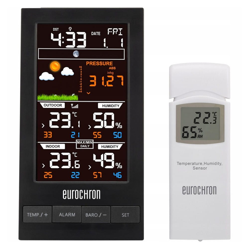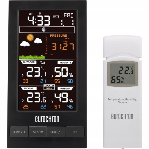 Stacja pogody EUROCHRON PROGNOZA pogodowa ZEGAR czujnik zew WILGOTNOŚĆ