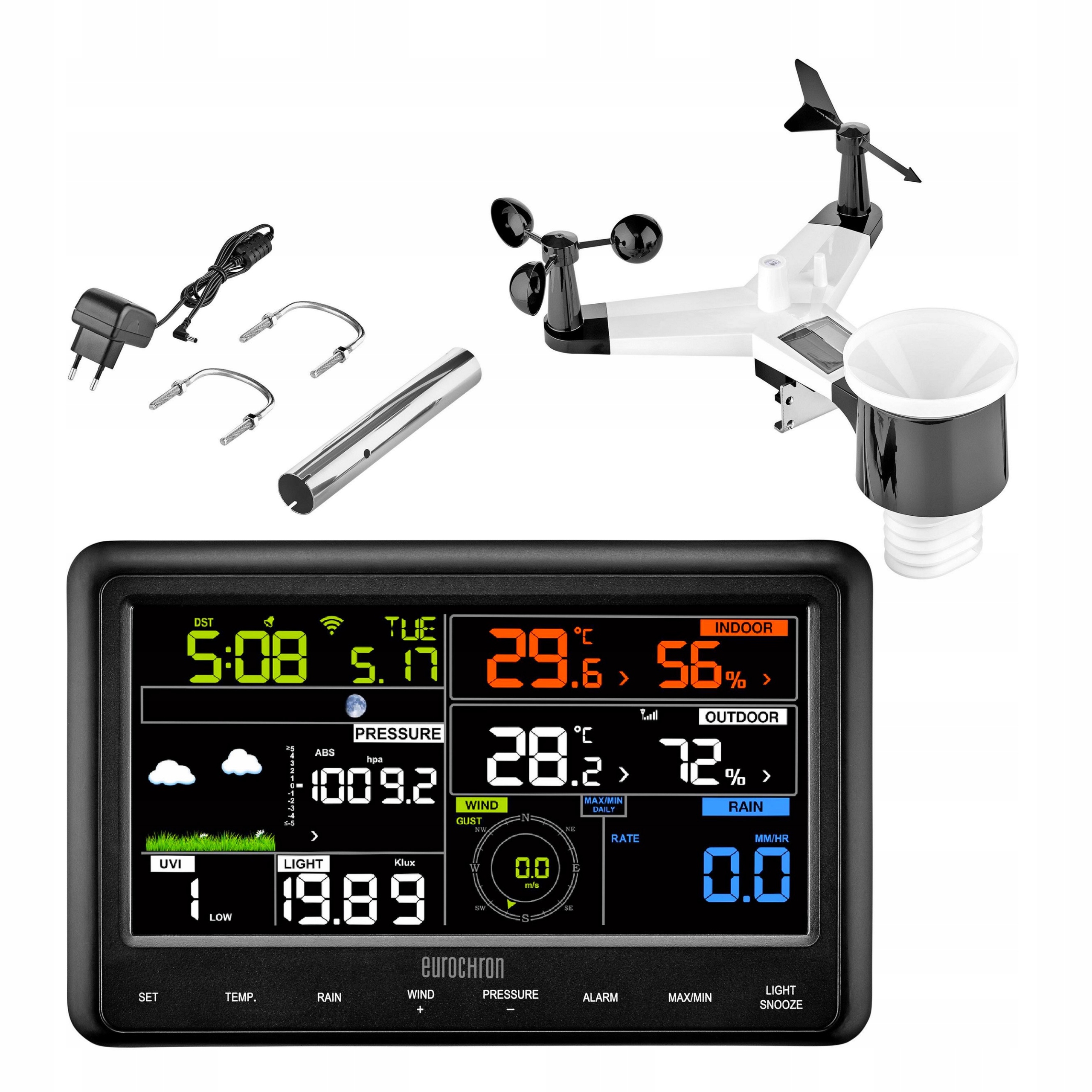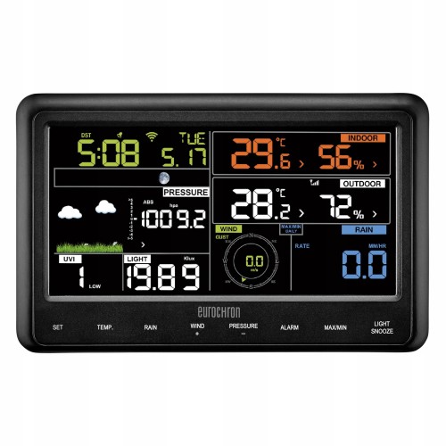 Stacja pogody EUROCHRON PROGNOZA pogodowa ZEGAR czujnik zew WILGOTNOŚĆ