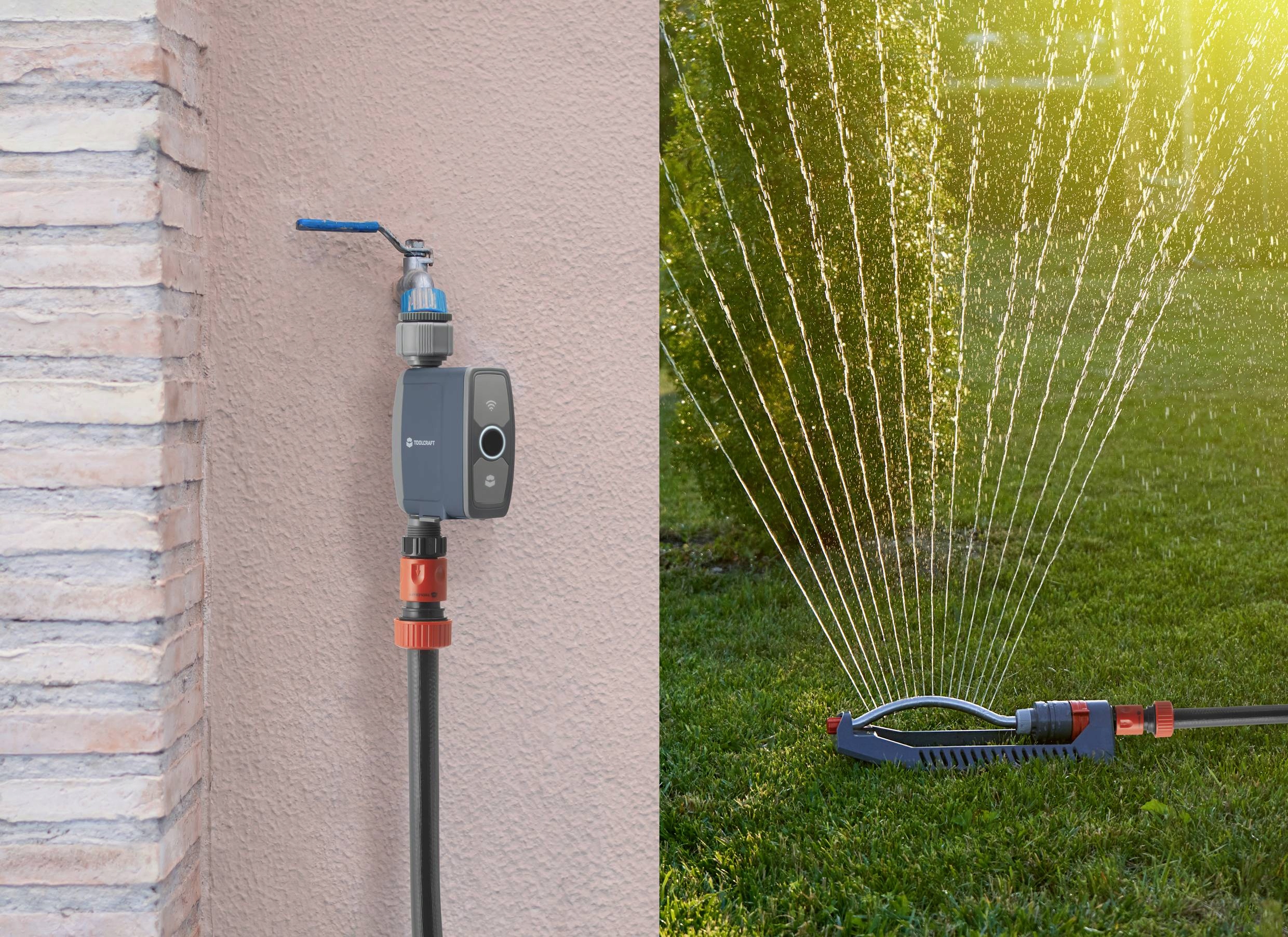 System nawadniania - łatwo sterowany również zdalnie przez Wi-Fi i aplikację. Nawadnianie ogrodu i roślin za naciśnięciem przycisku lub całkowicie automatycznie. System nawadniania WLAN umożliwia optymalne zaopatrzenie w wodę nawet w gorące i suche dni, a nawet podczas wakacji. Szybko gotowy do użycia: po prostu podłącz się do systemu nawadniającego i wygodnie ustaw optymalne ustawienia dla swoich roślin za pomocą aplikacji na smartfona Tuya. Sprawdź wilgotność i temperaturę gleby za pomocą aplikacji mobilnej.