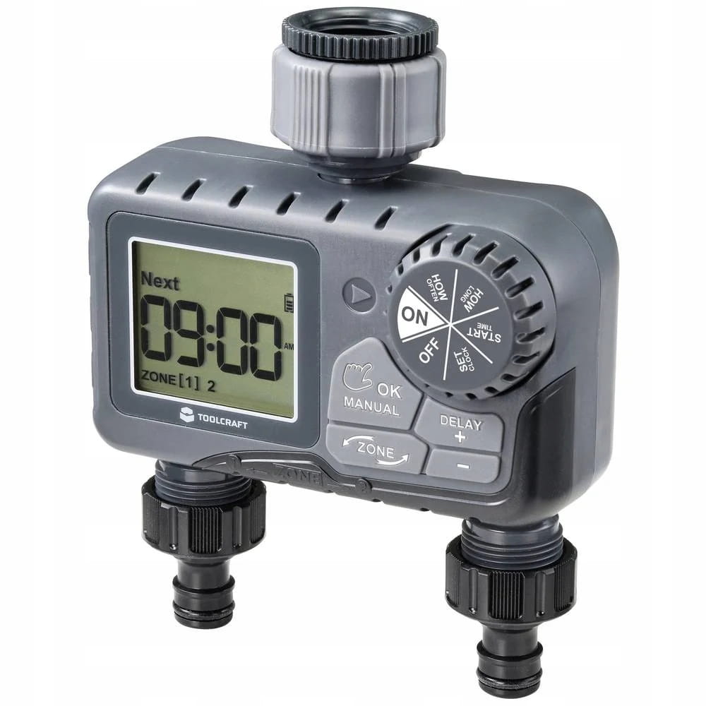 Łatwe sterowanie 2 różnymi obszarami nawadniania za pomocą dwóch zaworów. Indywidualny plan nawadniania dla każdej strefy. Przypomnienie o kolejnym czasie nawadniania.