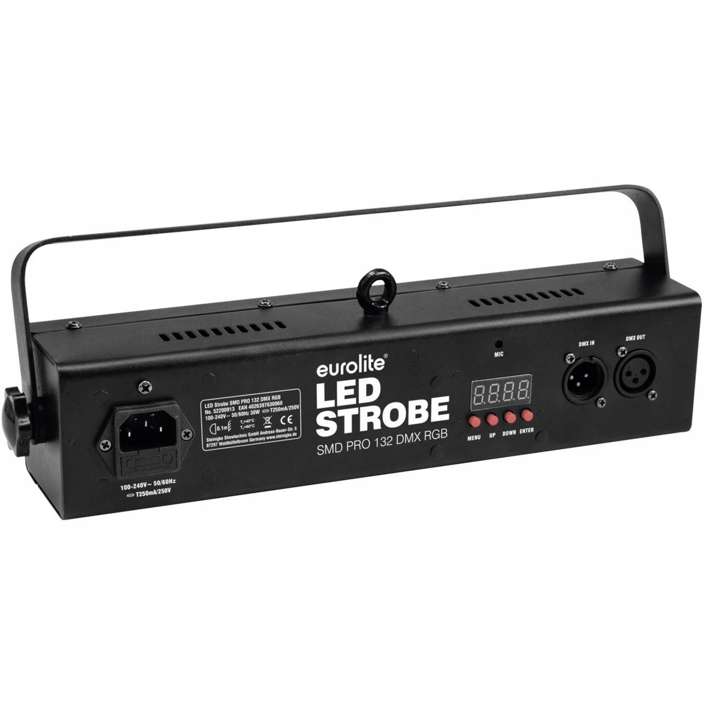 Kompaktowy stroboskop w smukłej obudowie jest wyposażony w 132 pozbawionych migotania diod LED typu RGB-SMD i oferuje efekty stroboskopowe.