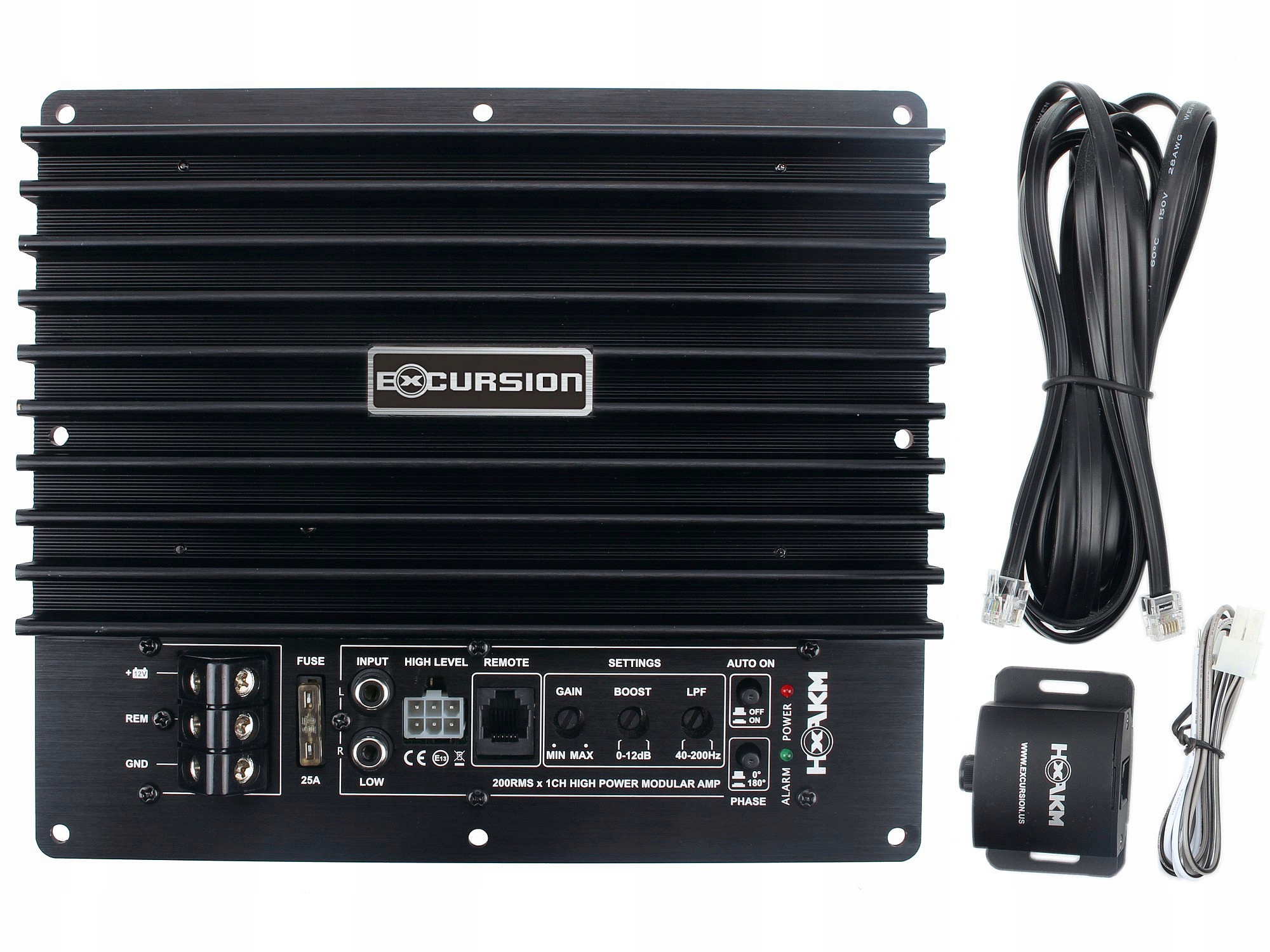 - Kompletny aktywny subwoofer samochodowy (głośnik niskotonowy + wzmacniacz mocy + obudowa).