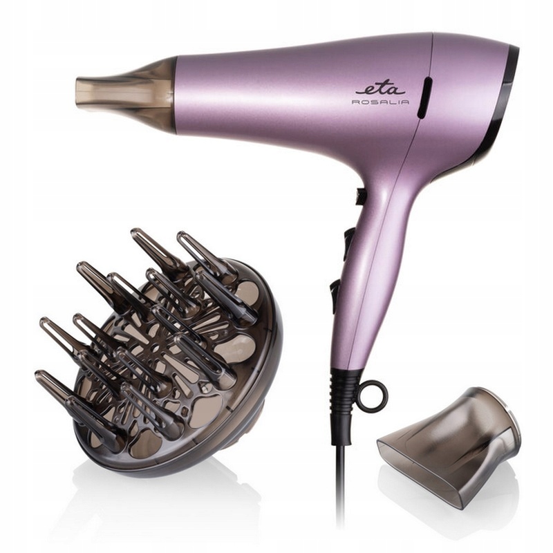 Suszarka do włosów Eta Rosalia o mocy 2200 W doskonale zadba o Twoje włosy - nada im pożądany kształt i zapewni dokładną pielęgnację. Ma ona praktyczny kształt i elegancką obudowę, której częścią jest ergonomiczny uchwyt zapewniający wygodną obsługę.