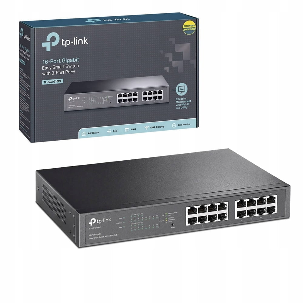 Switch sieciowy zarządzany TP-LINK 16 PORTÓW 1GbE RJ45 8 PoE KONFIGUROWALNY