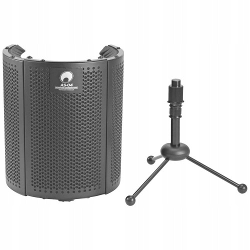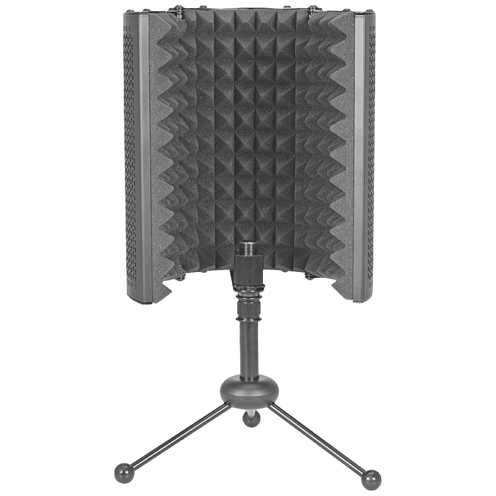 Przenośny pochłaniacz - dyfuzor do zastosowań studyjnych i na żywo. Zmniejsza do minimum uciążliwe wpływy pomieszczenia, takie jak odbicia, echa i szumy tła w nagraniach wokalnych i instrumentalnych. Wysuwany statyw stołowy. 3 składane segmenty. Solidna i stalowa rama z pianką akustyczną o wysokiej gęstości.