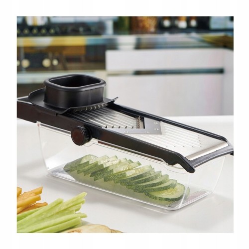 - Krajalnica z ostrzem w kształcie litery V łatwo i szybko kroi warzywa