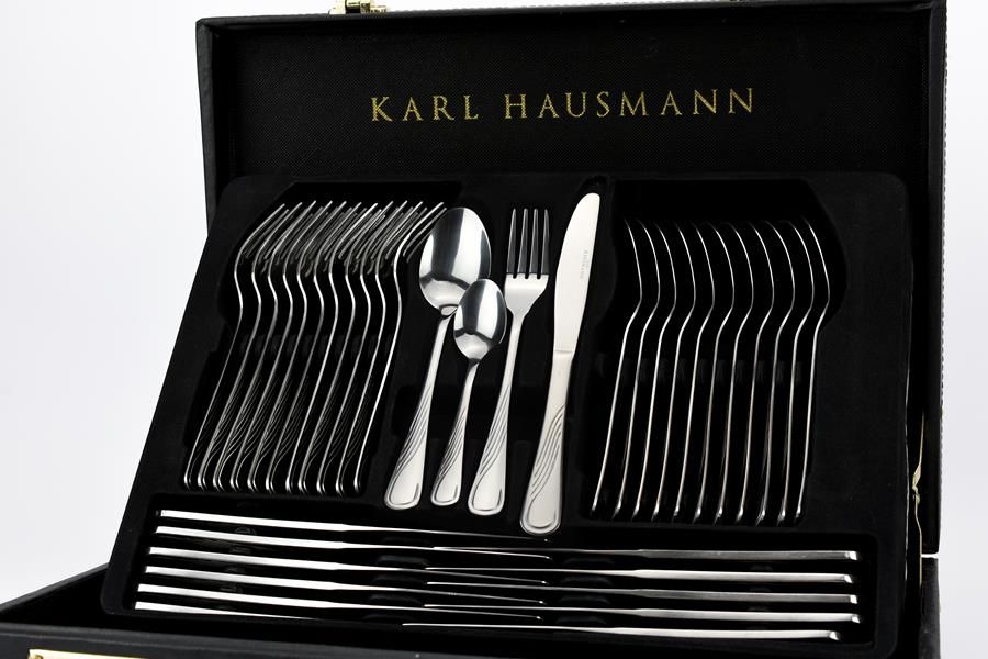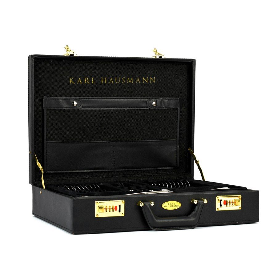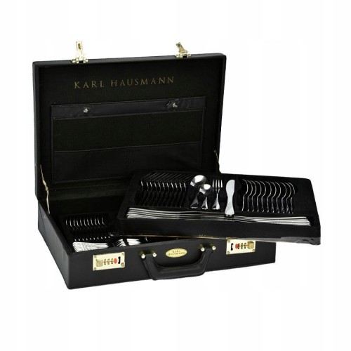 Komplet dedykowany dla 12 osób. Sztućce wykonane są z wysokiej jakości stali nierdzewnej, cechującej się wysoką odpornością na korozję oraz sporą wytrzymałością. Wszystkie elementy zestawu polerowane są na wysoki połysk. Można je myć w zmywarce. Całość zapakowana jest w przydatną, solidną walizkę, ze stopkami izolującymi ją od podłoża.