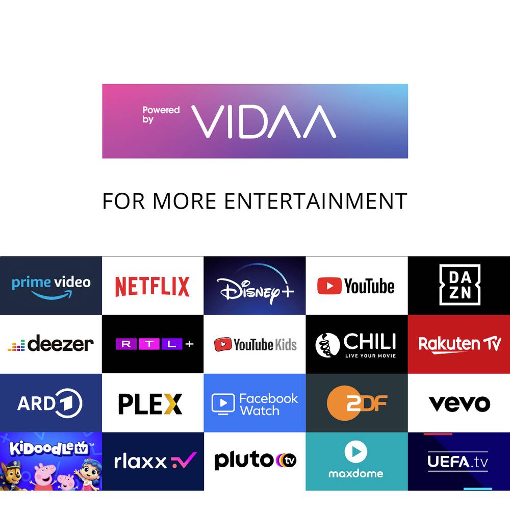 Nowoczesny telewizor smart TV z systemem VIDAA, który oferuje szeroką gamę funkcji i możliwości.