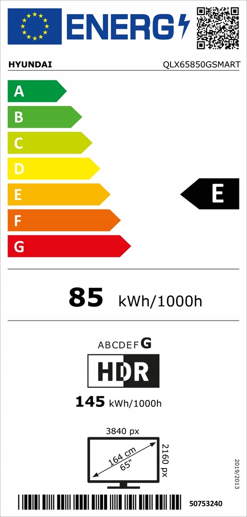 - Zużycie prądu w trybie SDR: 85 kWh = 97.75 zł