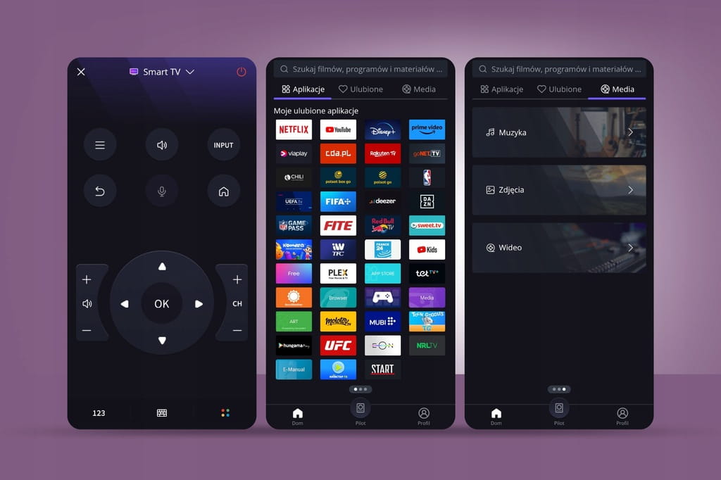 - Aplikacje: YouTube, Netflix, Disney+, Prime Video, viaplay, cda.pl, polsat go, deezer, Kids