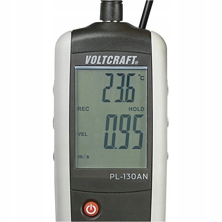 Może on mierzyć prędkość powietrza w m/min, strumień objętości w m³/s, a także mierzyć temperaturę powietrza i pokazywać zmierzone wartości na podświetlanym wyświetlaczu.