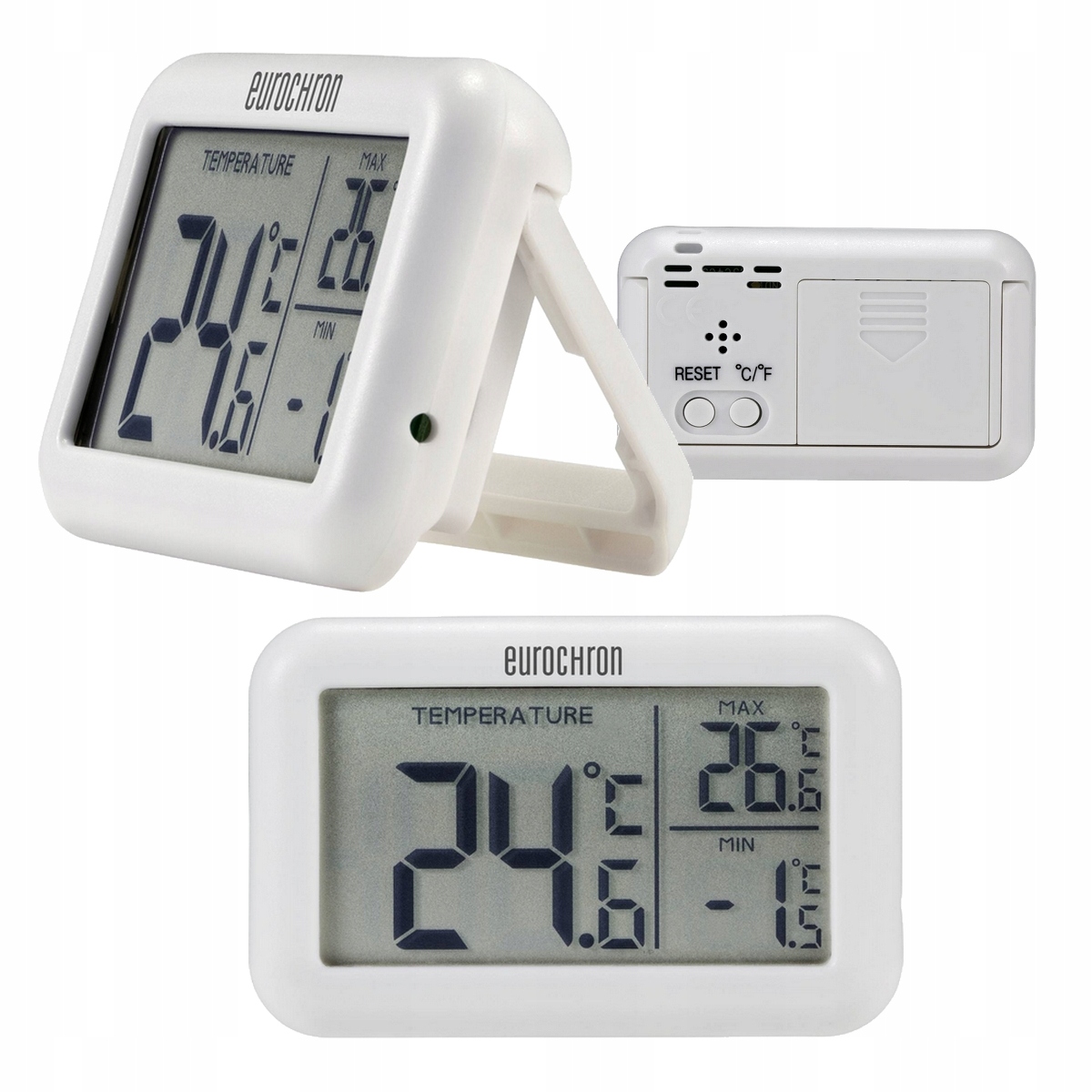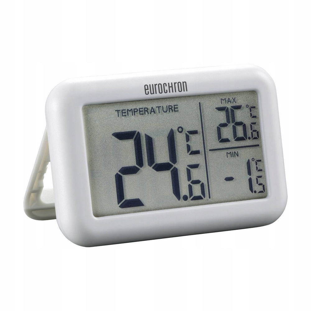 Duży wyświetlacz pozwala odczytać aktualną, maksymalną i minimalną temperaturę z odległości.