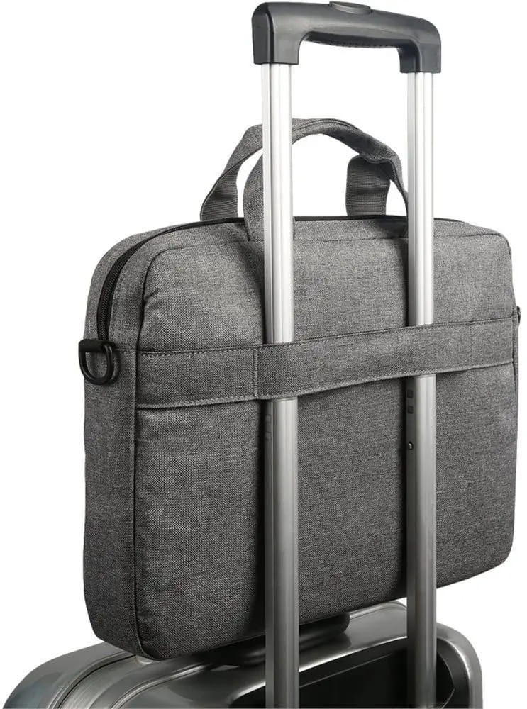 Torba posiada przegrodę, która z łatwością pomieści laptopa o przekątnej 15,6''. Natomiast szeroka gama wewnętrznych kieszeni pozwoli Ci zabrać niezbędne akcesoria oraz dużą ilość dokumentów. Torbe możesz również zabrać w podróż bez uczucia dyskomfortu. Torba posiada specjalny pas, który umożliwia umieszczenie akcesorium na ramieniu walizki podróżnej.