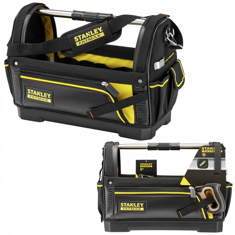 Torba narzędziowa SZTYWNA na ramię metalowy UCHWYT otwarta STANLEY 48x25 cm