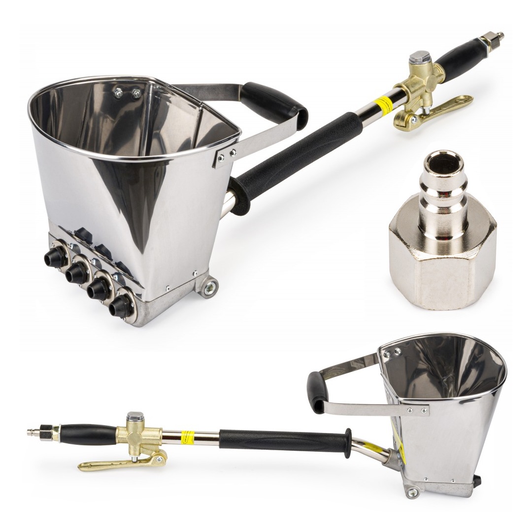 Tynkownica wykonana z wysokiej jakości stali nierdzewnej oraz aluminium. Dysze wykonane z wysokogatunkowego stopu metali, zapewniają długotrwałą bezawaryjną pracę. Charakteryzuje się mocną konstrukcją i łatwością w użytkowaniu. Tynkownica dzięki swojej unikalnej konstrukcji nadaje się zwłaszcza do sufitów.