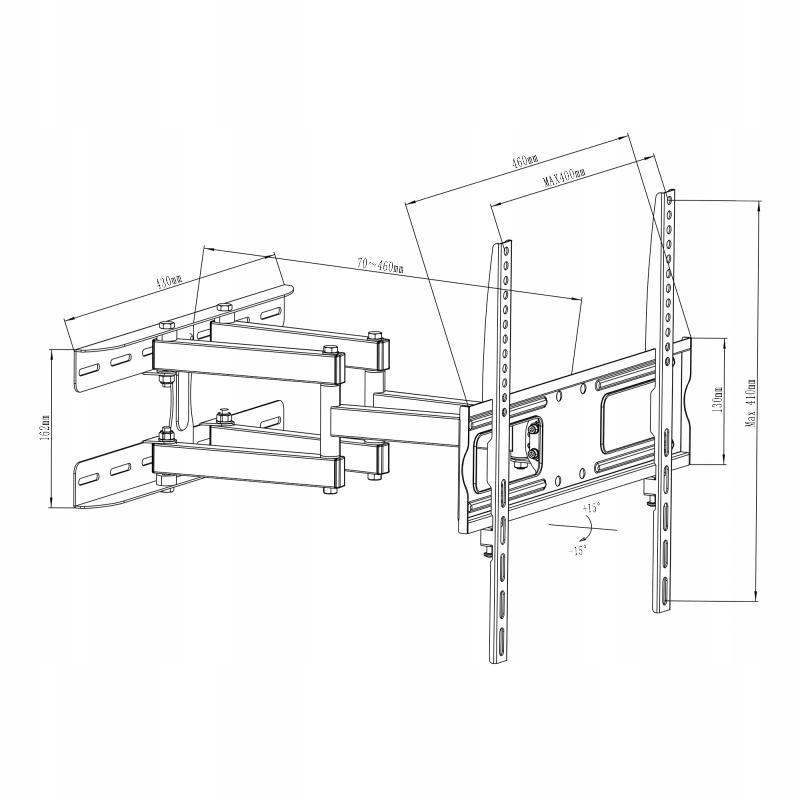 - Odległość od ściany: 70~460 mm