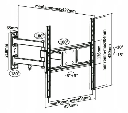- Odległość od ściany: 63 ~ 427 mm
