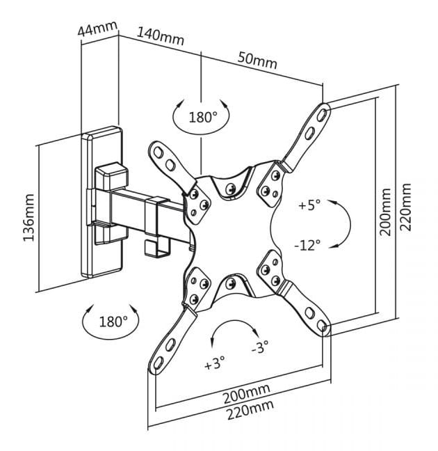 - Standard VESA: 200x200, 200x100, 100x100, 75x75