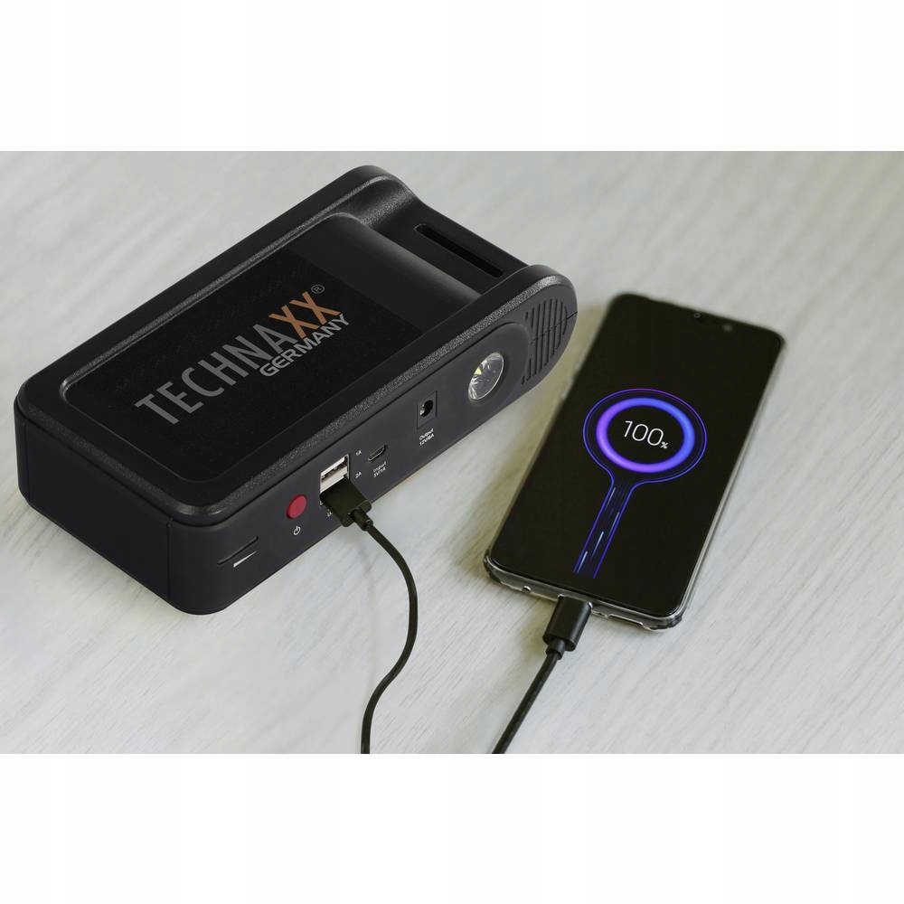 Booster z akumulatorem o dużej pojemności 12000 mAh i wartości szczytowej prądu 600 A, do uruchomiania silników diesla do 2.5 L i silników benzynowych do 4 L. Zintegrowany Powerbank do ładowania m.in. aparatów cyfrowych, laptopów, telefonów komórkowych, urządzeń nawigacyjnych, smartfonów, przenośnych konsol do gier, tabletów i do zasilania 12 V akcesoriów samochodowych, jak np. kompresory powietrza lub lodówki turystyczne. Obszerny zestaw składa się z kabli rozruchowych, kabla do ładowania, przejściówki z gniazdem zapalniczki oraz ładowarki sieciowej USB. Aby uniknąć nieprawidłowego połączenia, urządzenie rozruchowe jest wyposażone w technologie bezpieczeństwa, zapewniające ochronę przed przebiegunowaniem oraz ochronę elektroniki. Wbudowana lampa LED z kilkoma funkcjami. Booster jest idealny dla użytkowników, którzy potrzebują urządzenia wspomagającego rozruch silnika oraz zapasowego źródła energii, które może ładować i obsługiwać wiele urządzeń elektronicznych. Ładowanie boostera odbywa się za pomocą dołączonej ładowarki sieciowej USB.