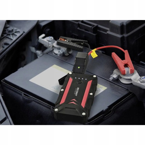 Powerbank posiada funkcje rozruchu wspomagającą odpalenie auta z rozładowanym akumulatorem.