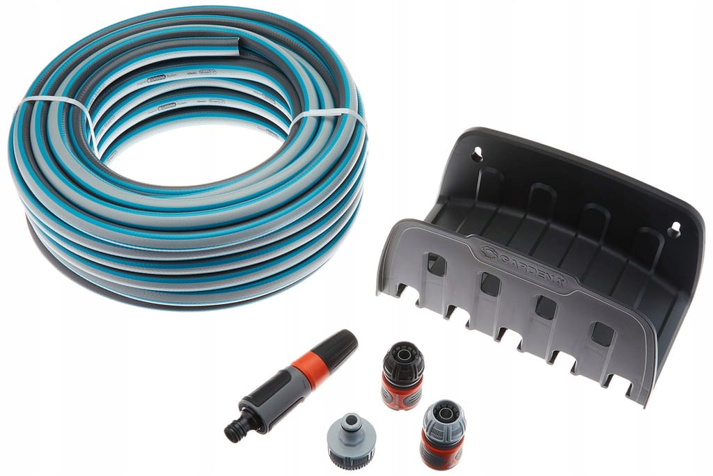 WĄŻ ogrodowy 20 metrów 1/2 cala UCHWYT ścienny końcówka zraszająca GARDENA