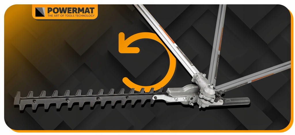 Łatwa i szybka zmiana podzespołów tnących bez konieczności użycia narzędzi. Nożyce do żywopłotu posiadają regulację kąta cięcia, co pozwala na precyzyjne formowanie krzewów i żywopłotów.