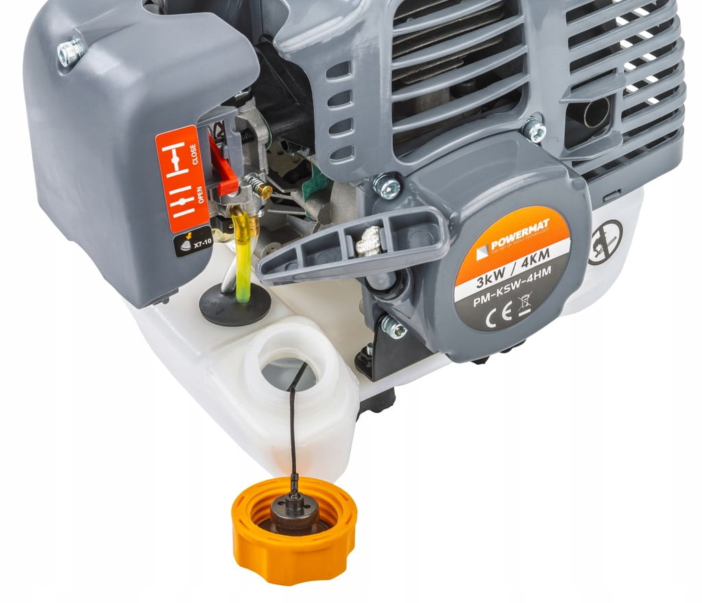 - Kosa spalinowa Powermat 4w1 została wyposażona w dwusuwowy silnik o pojemności 42 cm³ i mocy 4 KM, co zapewnia wysoką efektywność pracy.