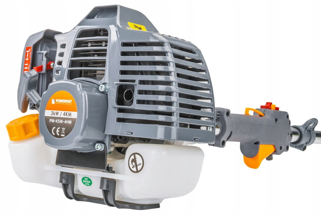 Kosa spalinowa Powermat 4w1 została wyposażona w dwusuwowy silnik o pojemności 42 cm³ i mocy 4 KM, co zapewnia wysoką efektywność pracy.