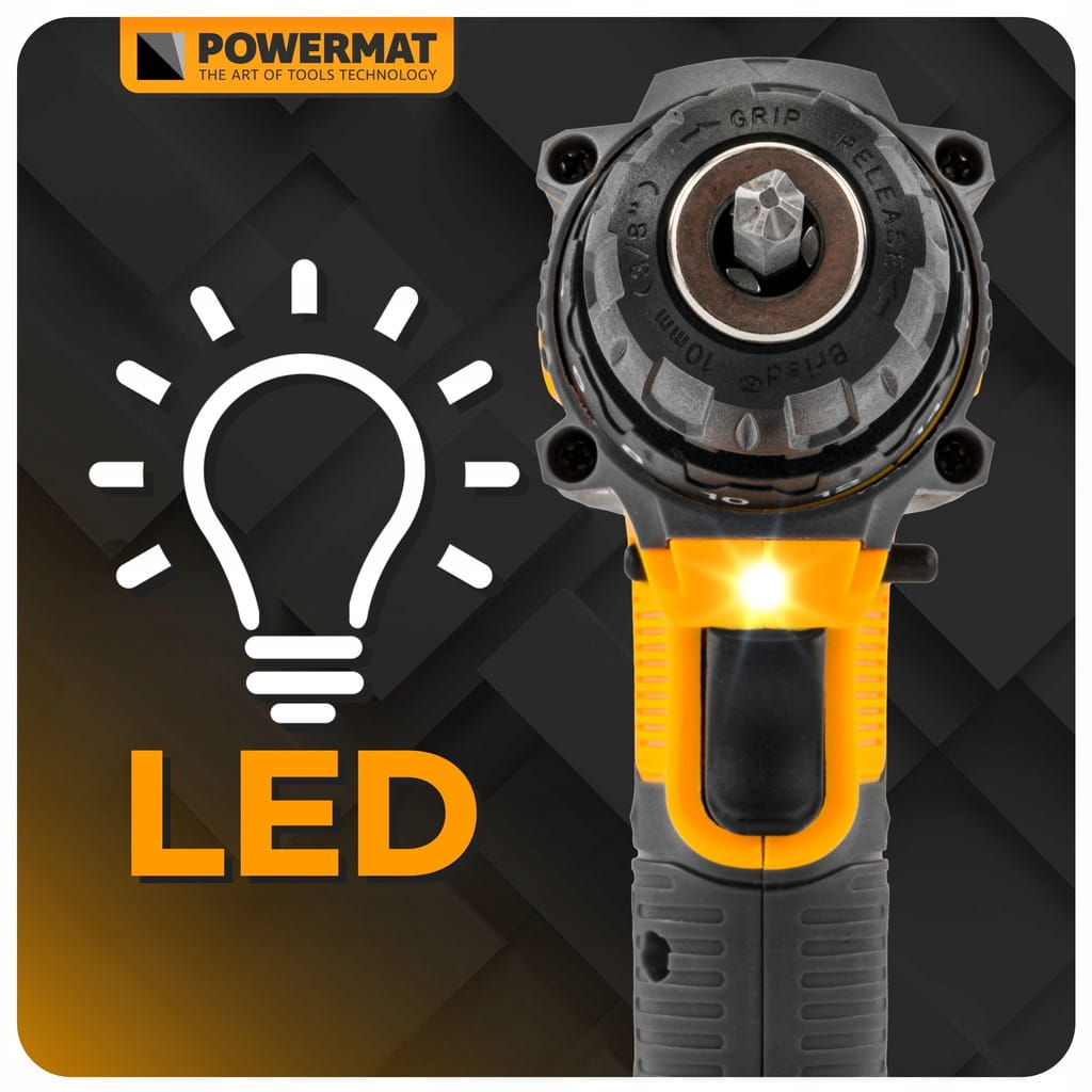 Wkrętarka wyposażona jest w diodę LED umieszczoną pod wrzecionem, która umożliwia oświetlenie miejsca pracy, co jest szczególnie przydatne w zaciemnionych miejscach.