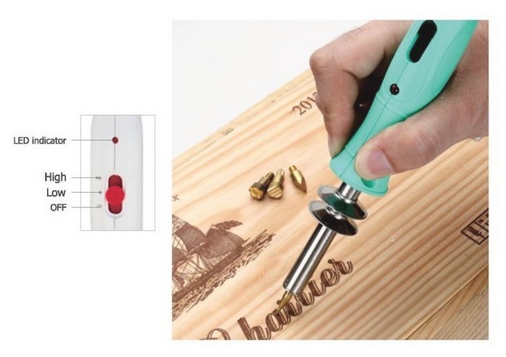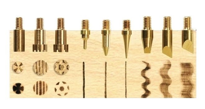 Wypalanie wzorów i motywów na różnych materiałach. Ostrze nadaje się do cięcia styropianu na gorąco. Może również służyć jako lutownica.