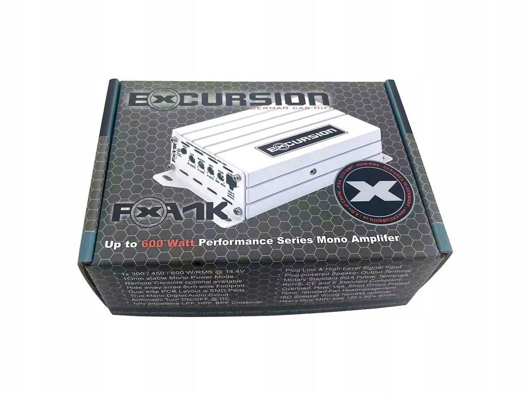 WZMACNIACZ samochodowy Excursion do systemów fabrycznych 1 kanał 600W od 1 ohm do SUBWOOFERA