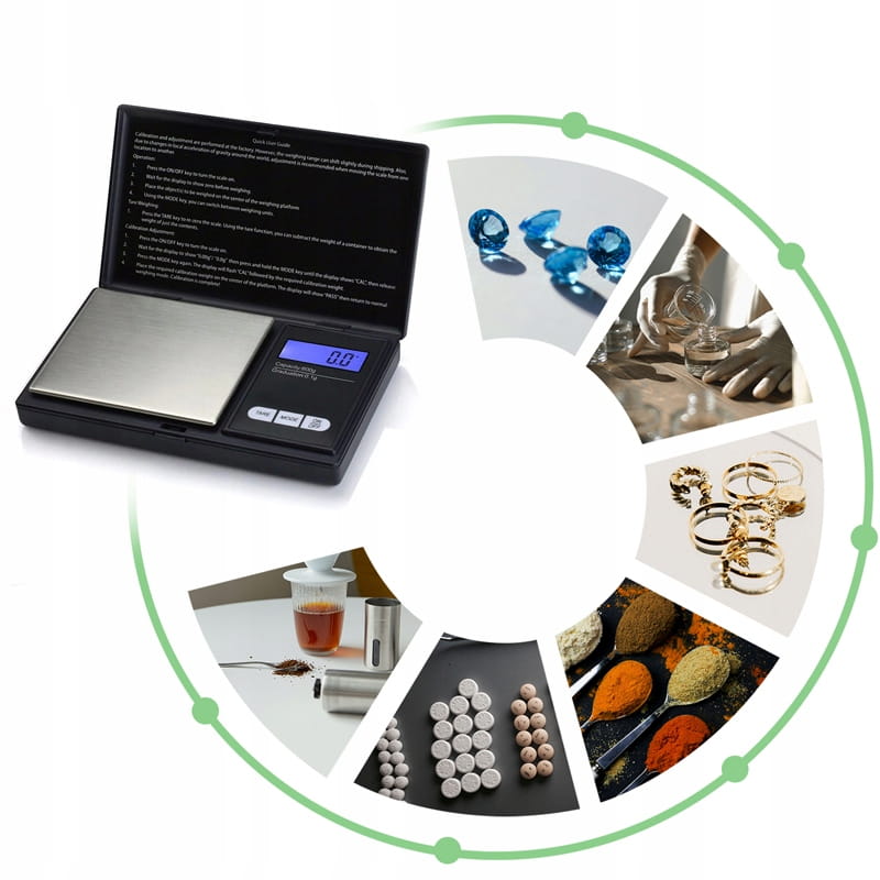 Każdy jubiler, aptekarz lub kolekcjoner posiadać musi wagę, która spełni jego wymagania. Znalezienie precyzyjnej wagi cyfrowej, która posłuży do ważenia biżuterii, leków lub monet i kamieni szlachetnych to nie lada wyczyn. Kieszonkowa waga posiada szeroki zakres ważenia, a dokładność pomiaru sprawdzi się przy oszacowaniu masy złota lub elementów modeli samolotów. Automatyczna kalibracja oraz funkcja tarowania są dodatkowym atutem naszej elektronicznej wagi. Waga sprawdzi się również w kuchni do ważenia przypraw, ziół itp.