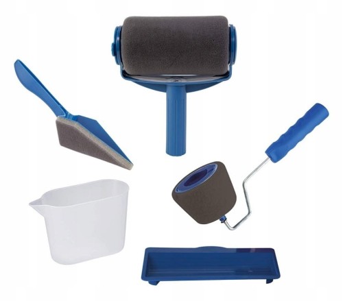 Niekapiący wałek wielokrotnego użytku z pojemnikiem na farbę, który sprawi że malowanie stanie się bardzo łatwe i w szybki sposób pomalujemy ściany wewnątrz jak i na zewnątrz. Nowa formuła i ulepszone działanie poprzez zastosowanie wytrzymałego mikrowłókna (z polipropylenu - karbonu).