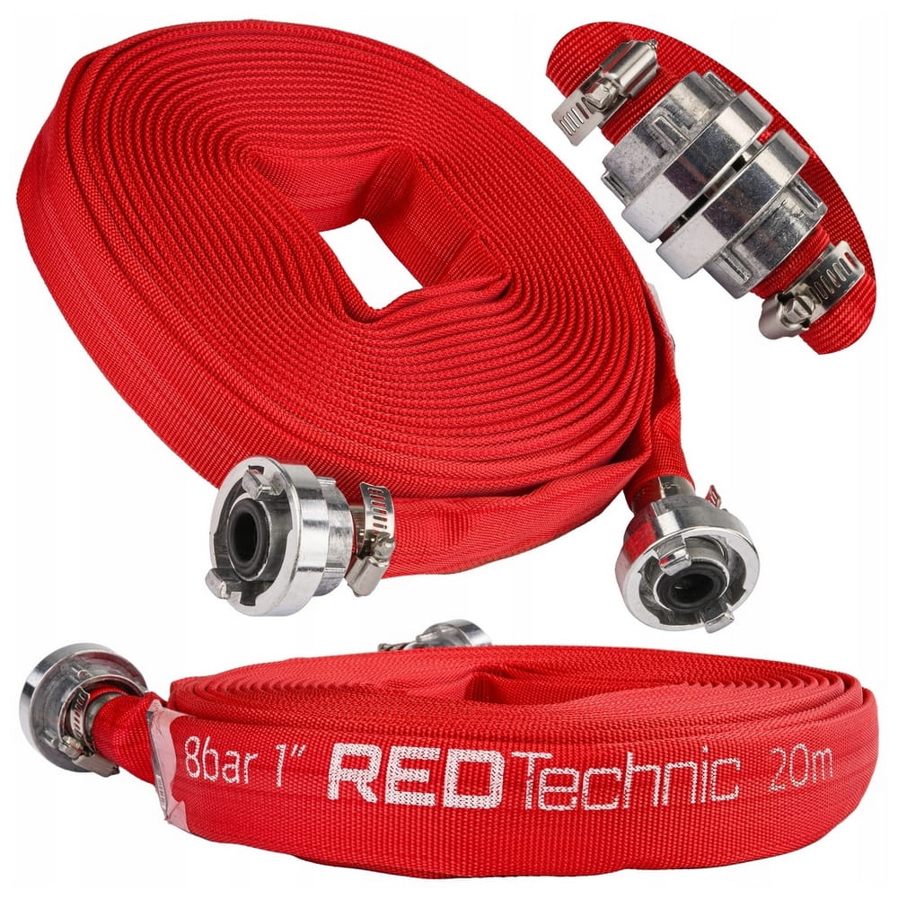 Wąż strażacki PARCIANY do wody 20metrów SZYBKOZŁĄCZKA 1cal 8BAR RED TECHNIC