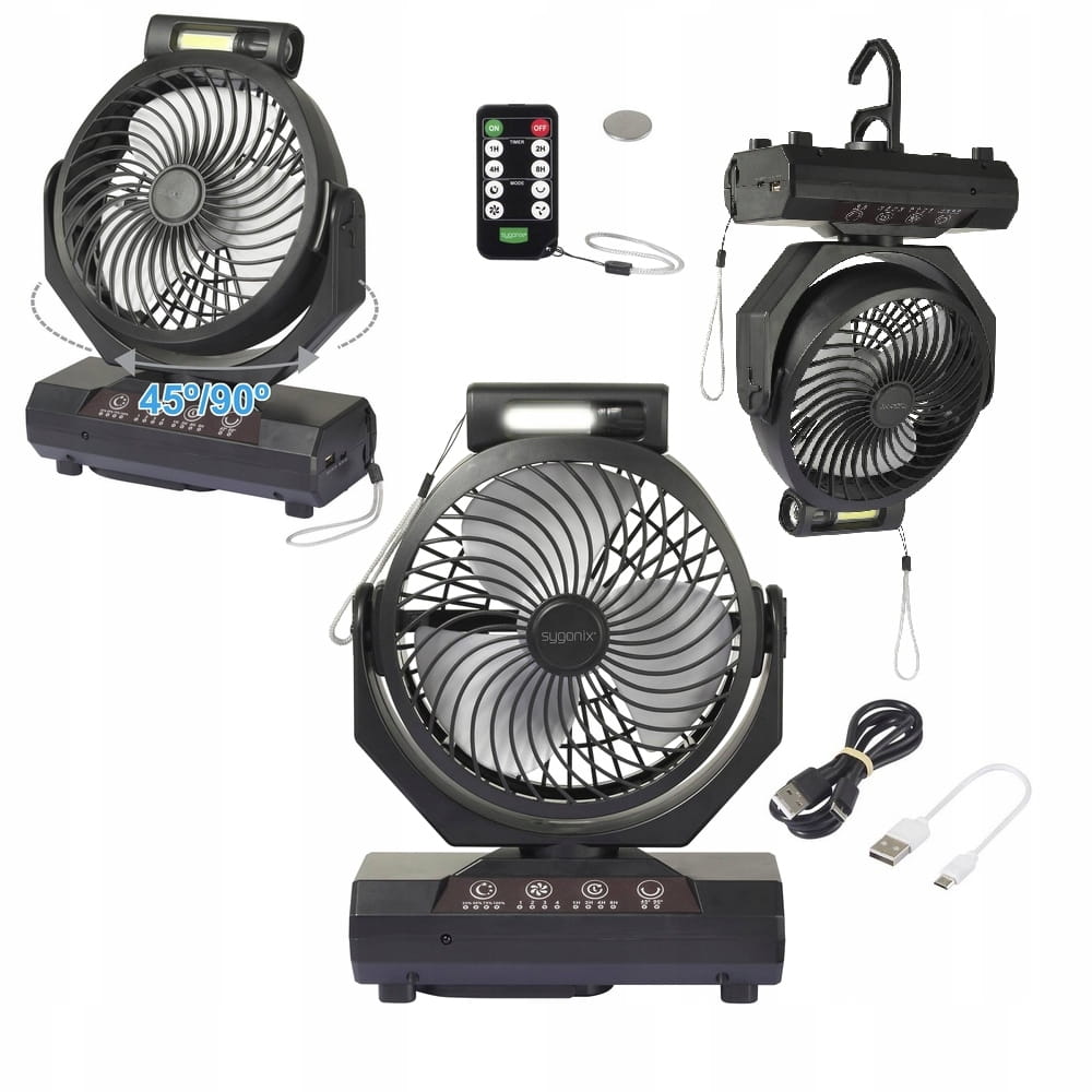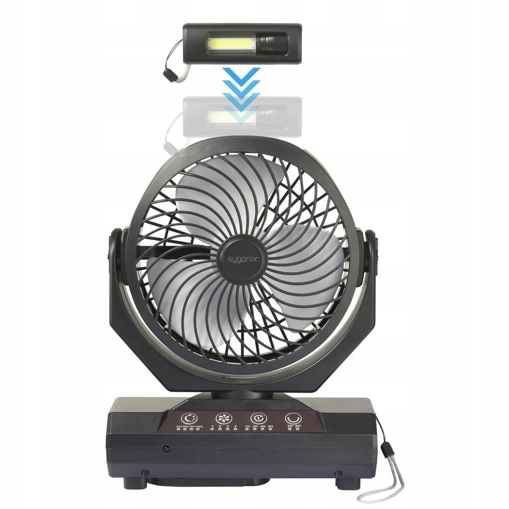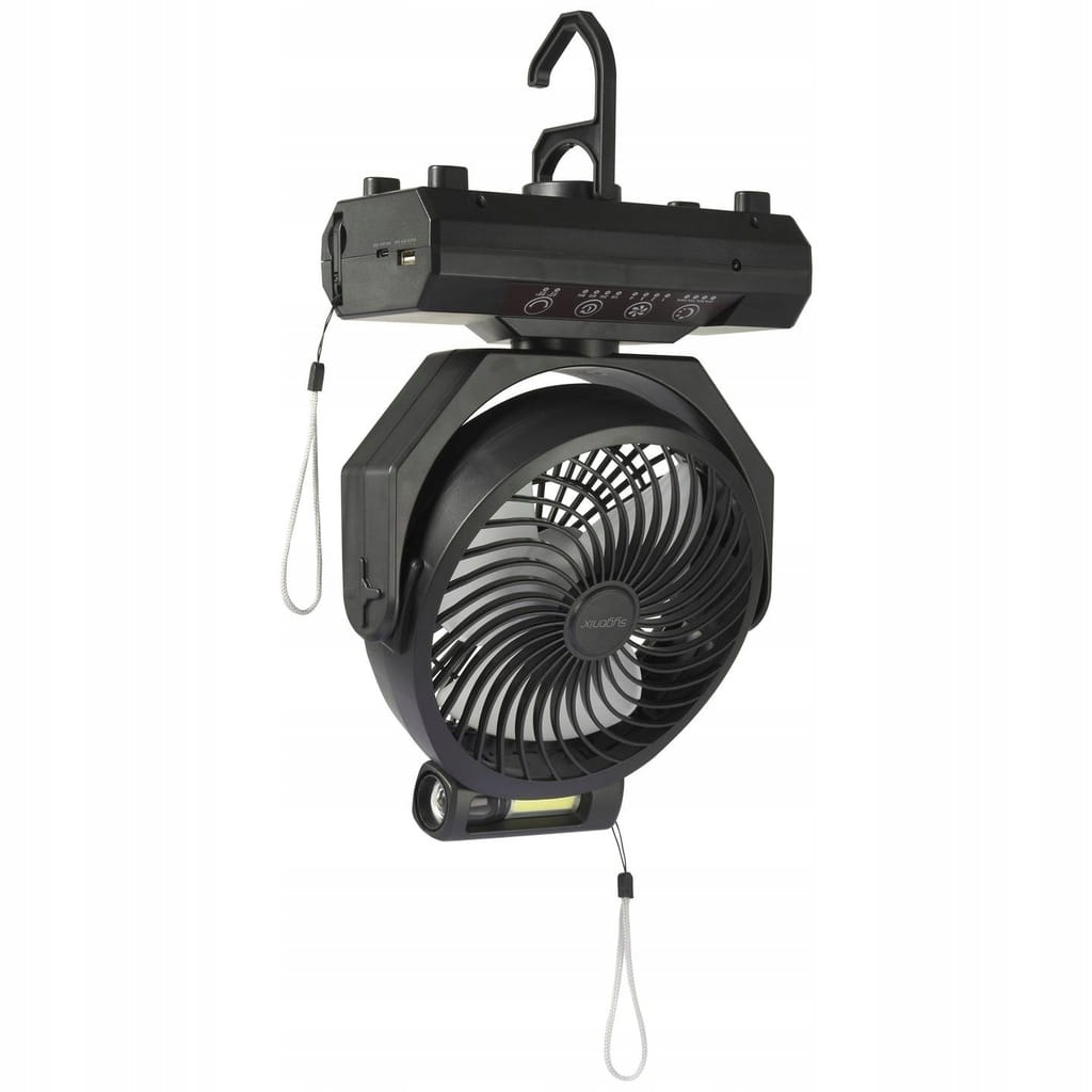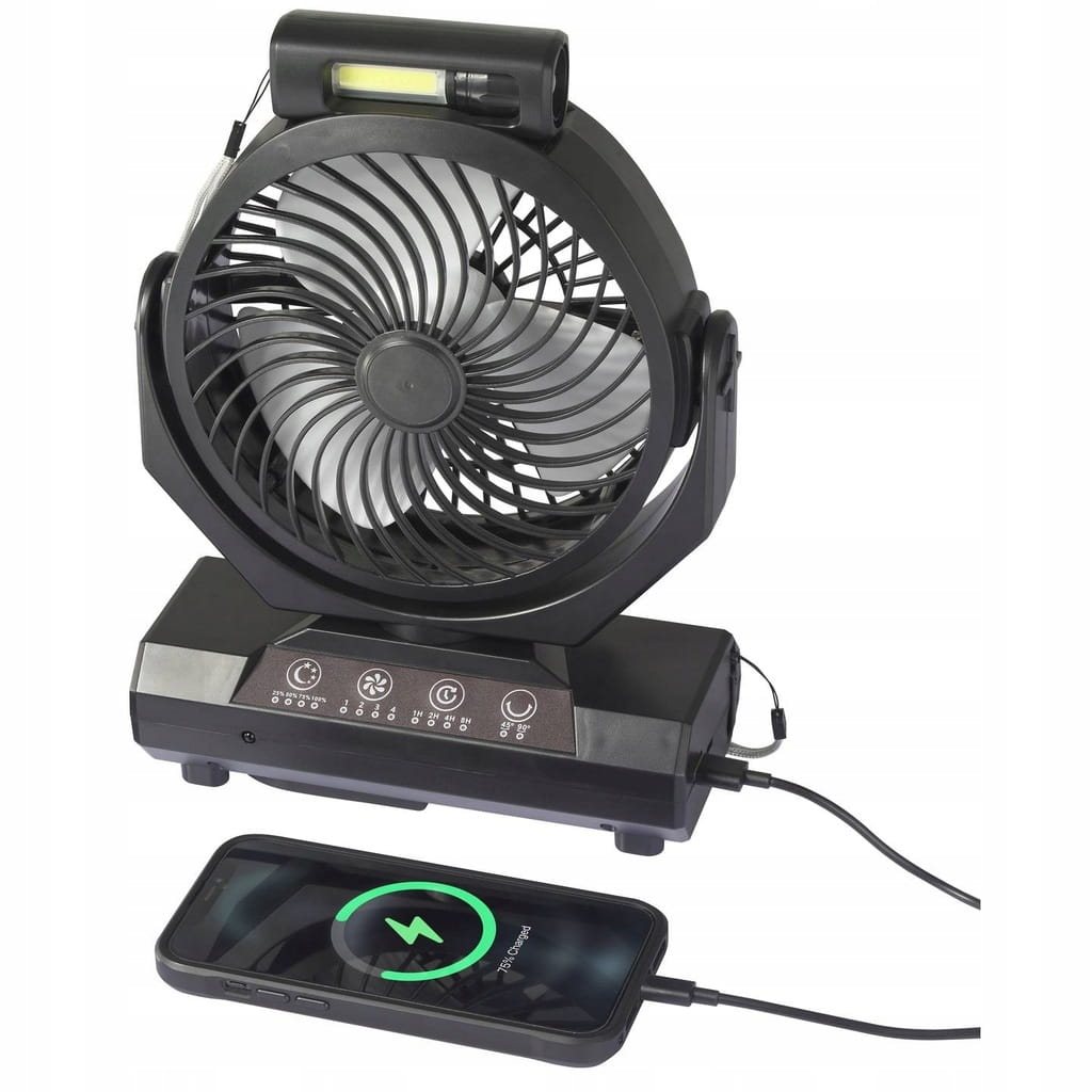 - Wielofunkcyjność - łączy funkcje wentylatora i latarki