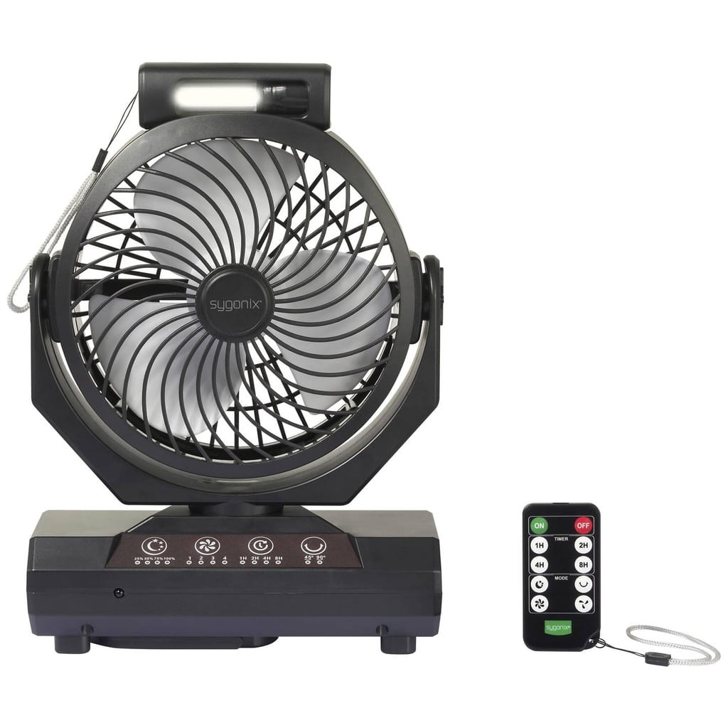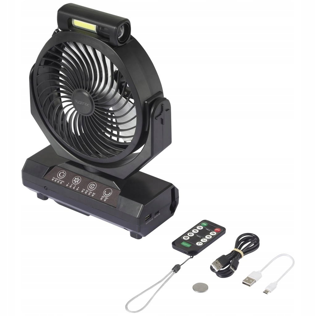 Dzięki wbudowanej baterii, wentylator może działać bez konieczności podłączania do zasilania sieciowego, co jest wygodne w przypadku braku dostępu do prądu.