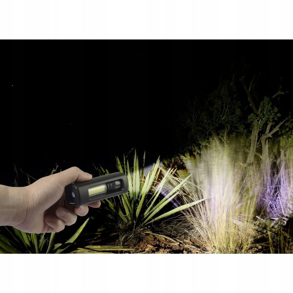 Latarka z wbudowaną baterią może działać bez potrzeby podłączania do prądu, co jest idealne podczas awarii zasilania, kempingów czy innych aktywności na świeżym powietrzu.