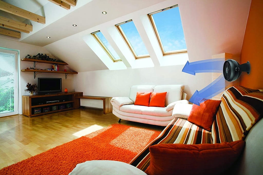 Mocny i bardzo lekki wentylator zapewniający maksymalny efekt chłodzenia, dzięki pochylonej głowicy z płaską podstawą. Urządzenie posiada funkcję montażu na ścianie.