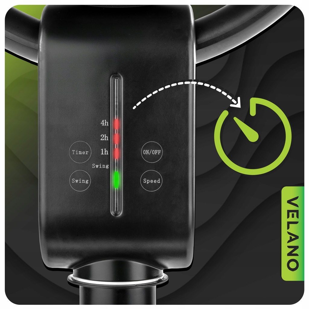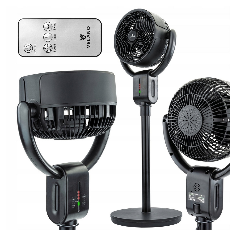 Wentylator z mocnym silnikiem zapewnia skuteczną cyrkulację powietrza i cichą pracę. Oferuje 3 tryby, 3 prędkości, oscylację, regulację nachylenia oraz timer do 7 godz.