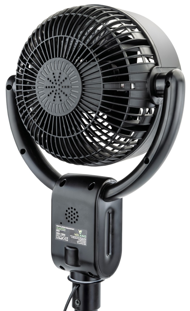 Wentylator posiada możliwość mechanicznej regulacji kąta nachylenia głowicy w pionie, co umożliwia precyzyjne skierowanie strumienia powietrza ku górze lub ku dołowi.